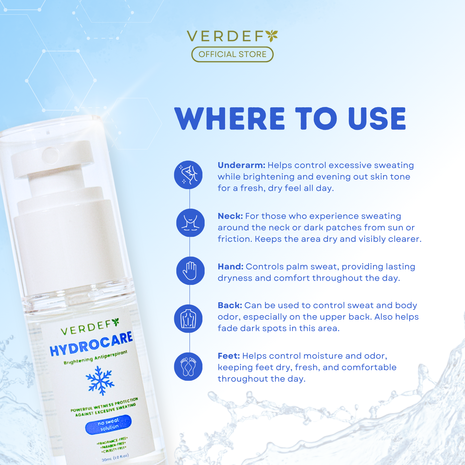 No more sweat. No more discomfort. Just spray and slay your day with VERDEFY HydroCare