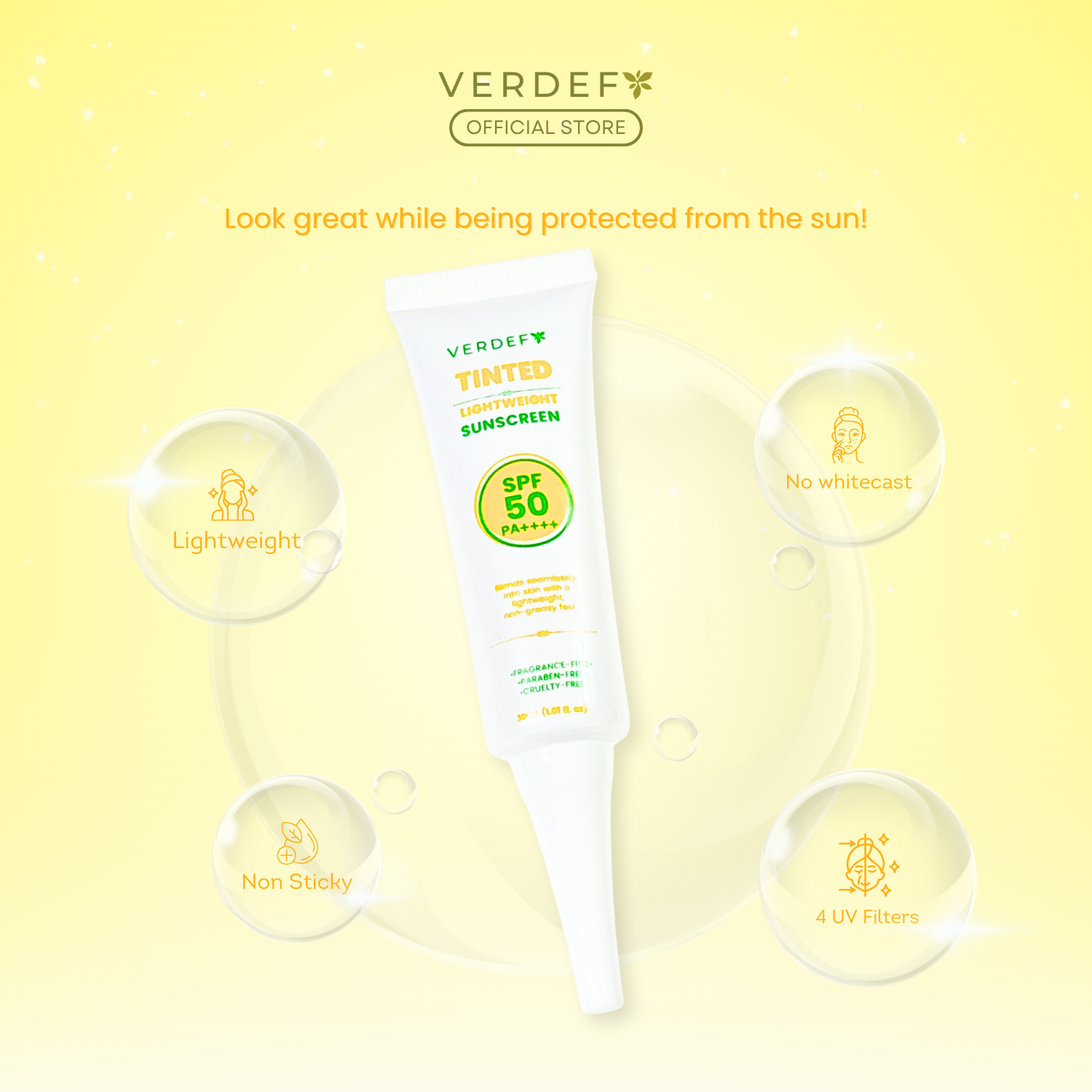Get ready for summer fun without the worry of sun damage! VERDEFY TINTED LIGHTWEIGHT SUNSCREEN SPF 50 PA++++ gives you broad-spectrum protection against harmful UV rays while providing a flawless, glowing finish. Its hydrating formula keeps your skin moisturized and smooth, perfect for all skin types. Whether you're heading to the beach, hiking, or just enjoying the outdoors, this tinted sunscreen has got your skin covered all day long!
